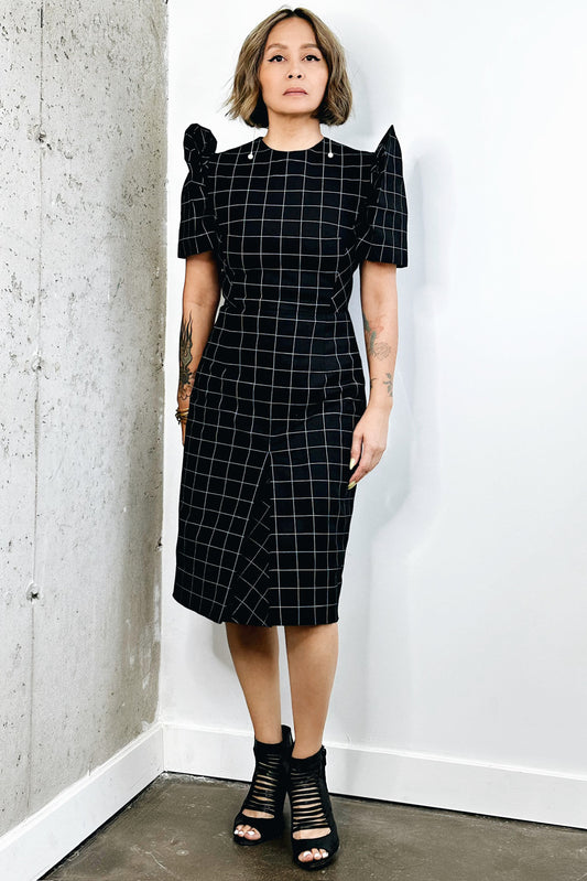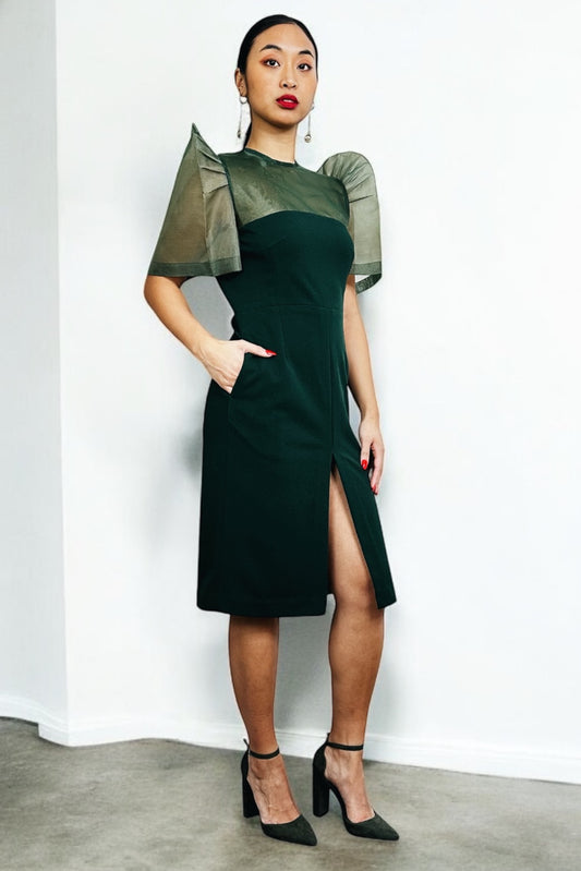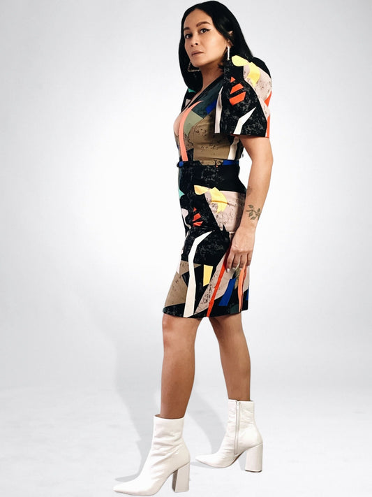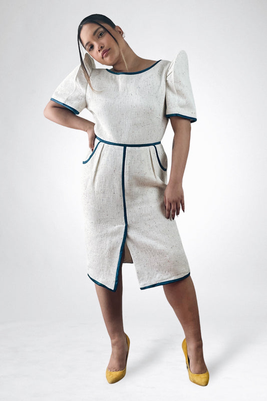 Sheath Terno Dress with Curved Neckline (Floral Twill)
