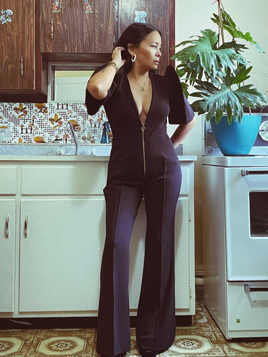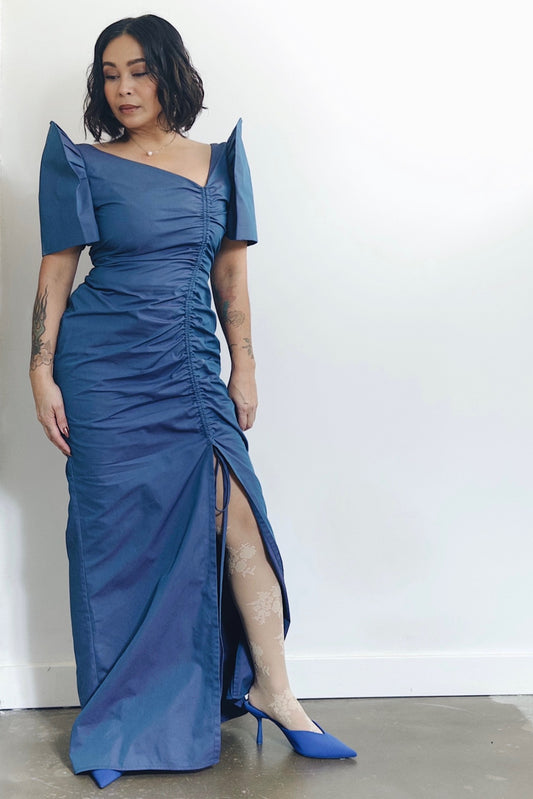 Open Back Stretch Silk Satin Terno Dress (Black)